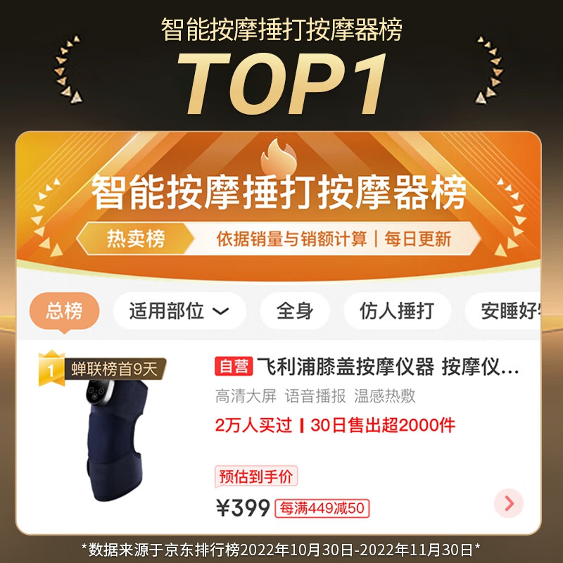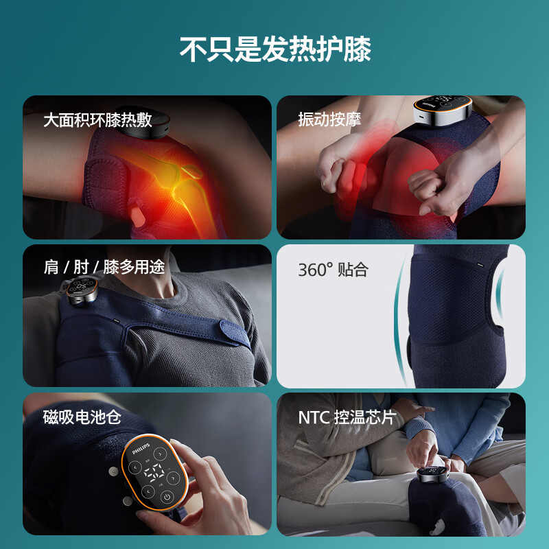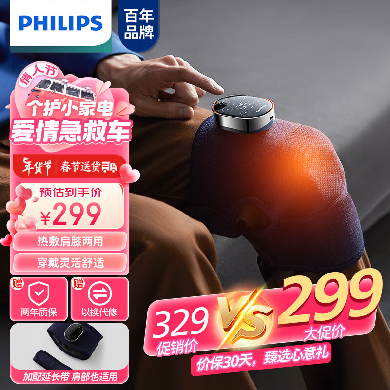飞利浦(PHILIPS)膝盖按摩仪器 加热护膝仪 膝盖热敷肩肘腿部按摩器老寒腿保暖护膝神器3101L价格:329.00元!