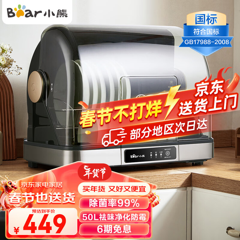 小熊(Bear)多功能消毒柜 家用台式 厨房碗筷刀架宝宝奶瓶 大容量紫外线烘干保洁柜ZTD50-A40Q5价格:419.00元!