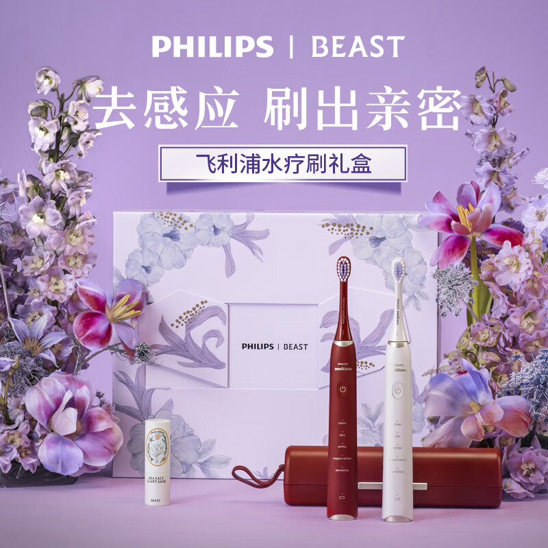 飞利浦(PHILIPS)电动牙刷成人情侣款 新年 情人节礼物送女友/男友 声波震动牙刷 野兽派礼盒 红色 HX2491/02QBP价格:379.00元!