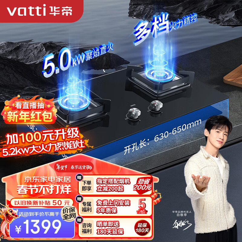 华帝(VATTI)燃气灶家用5.0kW大火力高热效易打理猛火灶台式嵌入式两用煤气灶双灶台灶具JZY-i10072B(液化气)价格:1599.00元!