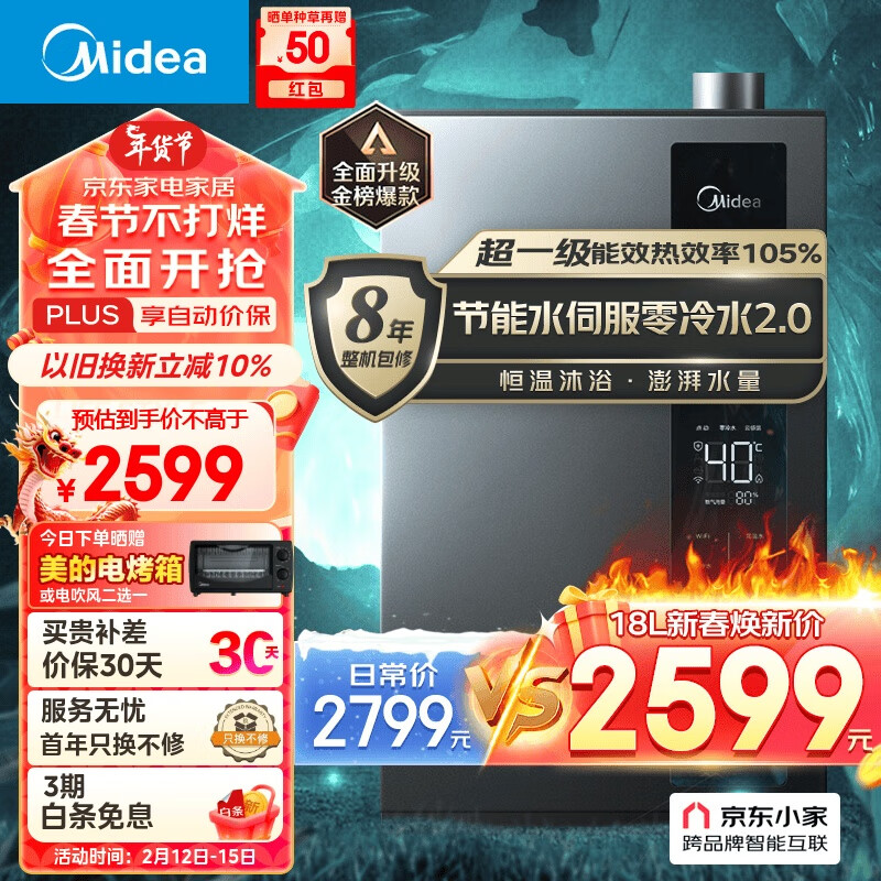 美的(Midea)18升燃气热水器 天然气 水伺服恒温 增压零冷水 超一级能效节能 多重安防 大水量 JSLQ30-18LN3价格:2599.00元!