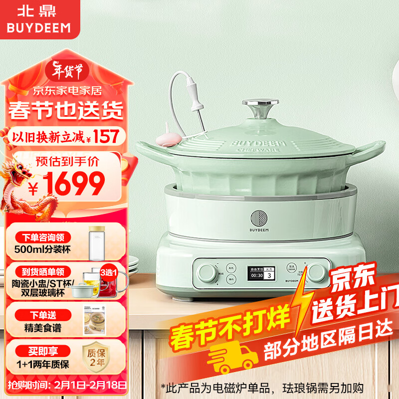 北鼎(Buydeem) 电磁炉电陶炉多功能一体家用大功率全自动节能小型灶恒温匀火烹饪一键预约【浅杉绿】价格:1619.00元!