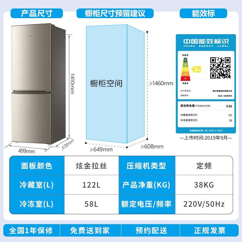 商品名称:海尔BCD-180TMPS