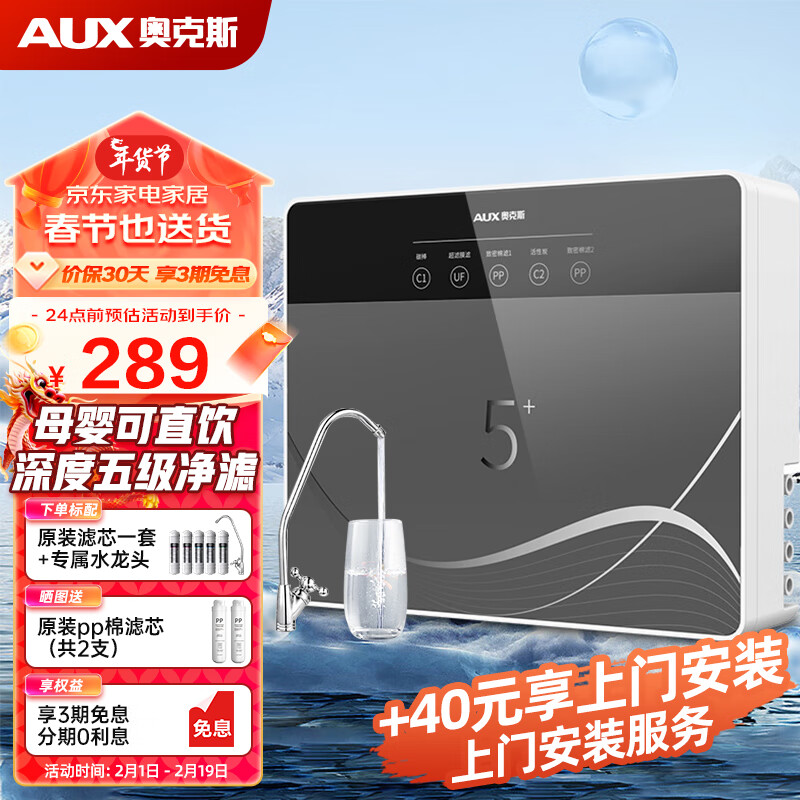 奥克斯(AUX) 净水器家用滤水器自来水厨下式净化器厨房饮水超滤水龙头台式台上台下过滤器净水机 AU18 自行安装价格:518.00元!