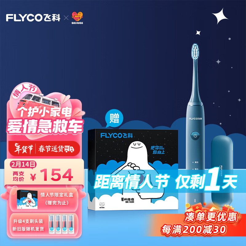 飞科(FLYCO)电动牙刷成人送男女朋友情侣生日情人节新年礼物软毛刷头智能声波震动牙刷配旅行盒FT7105深海蓝价格:177.80元!