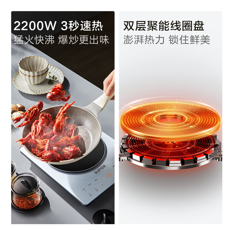 苏泊尔(SUPOR) 家用电磁炉 2200W大功率 电磁灶火锅炉 爆炒 电磁炉套装全套带锅 甄晶透彩系列C22-IA616价格:239.00元!