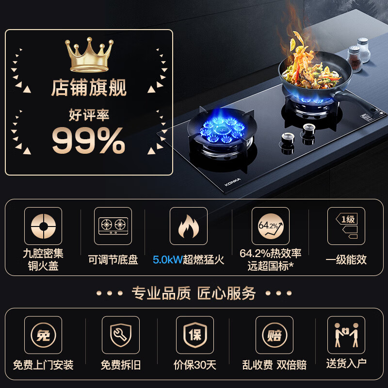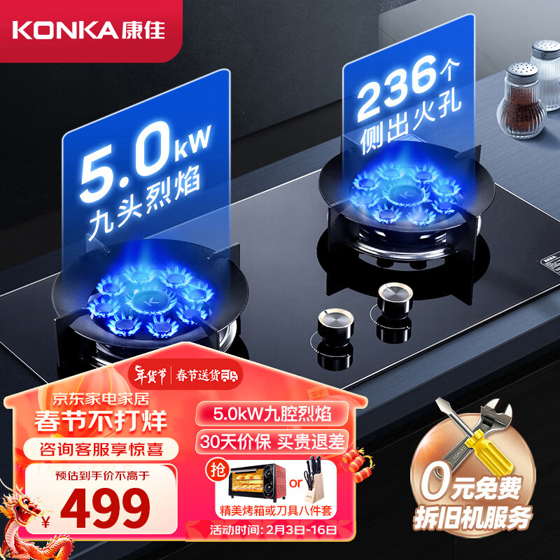 康佳(KONKA)灶具燃气灶煤气灶双灶 双九孔5.0kW聚能猛火爆炒专用 家用台式/嵌入式 JZY-B902Y(液化气)价格:499.00元!