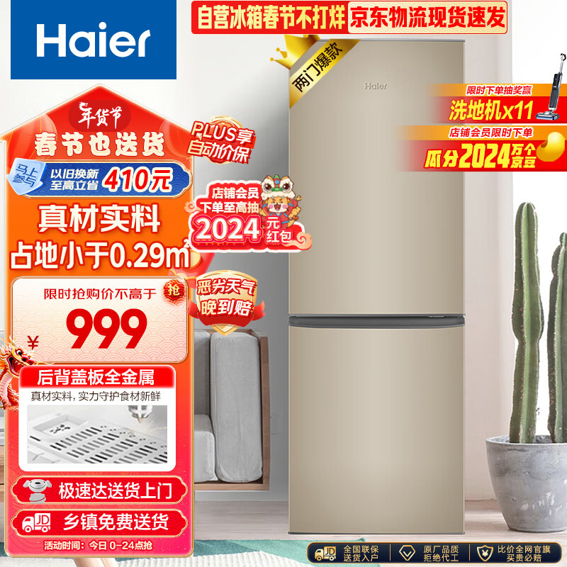 海尔(Haier)178升两门二门双门小型家用电冰箱节能低噪迷你宿舍租房小巧不占地方以旧换新BCD-178TMPT价格:999.00元!