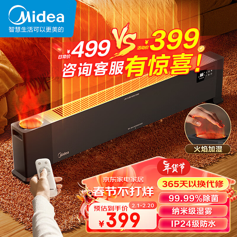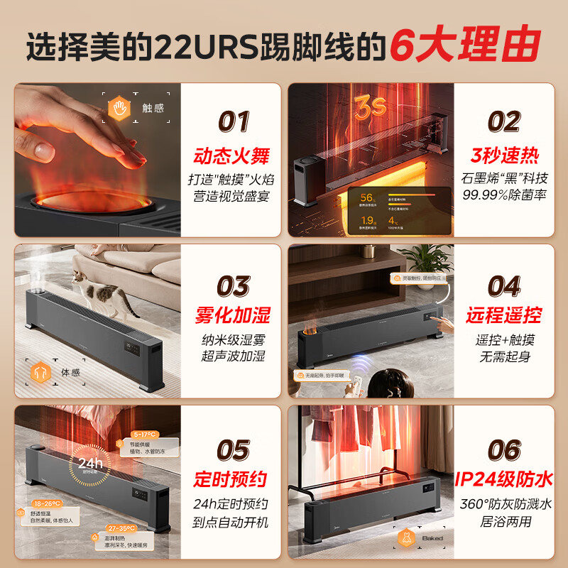 美的(Midea)【火舞系列】石墨烯踢脚线/取暖器家用/暖风机/电暖器/电暖气/移动地暖火焰除菌雾化加湿 HDU22URS价格:587.00元!