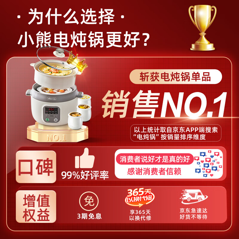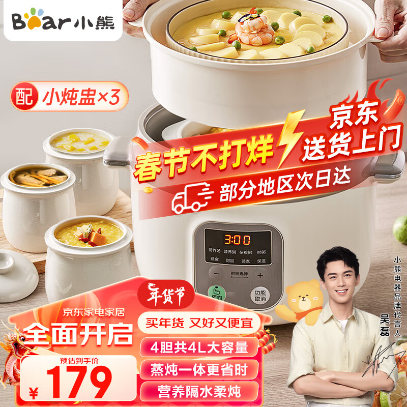 小熊(Bear)电炖锅 电炖盅 隔水炖锅 煲汤锅 燕窝炖盅 炖汤锅 炖汤盅蒸锅 婴儿煮粥神器 DDZ-C25X6 2.5L配蒸笼价格:189.00元!