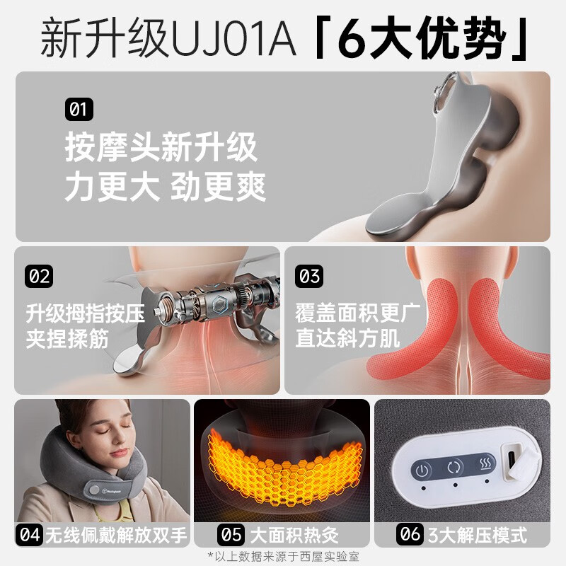 西屋(Westinghouse) UJ01A/UK5颈椎按摩器枕头肩颈按摩器斜方肌颈部按摩仪腰部颈椎按摩枕情人节生日新年礼物送女友 【旗舰款】UJ01A 高档实用节日礼物送爸爸妈妈父母价格:1399.00元!