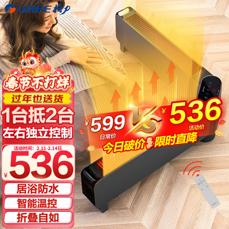 格力(GREE)折叠踢脚线取暖器家用大面积电暖器遥控电暖气片IPX4级防水移动地暖浴室干衣暖风机 1.5米折叠踢脚线NDJD-X6021B价格:536.00元!