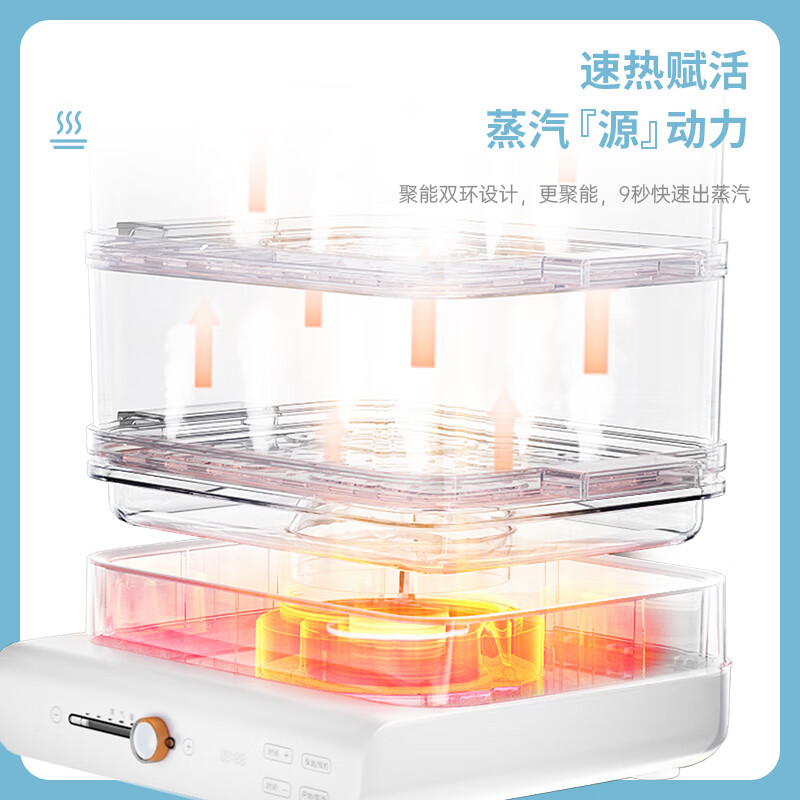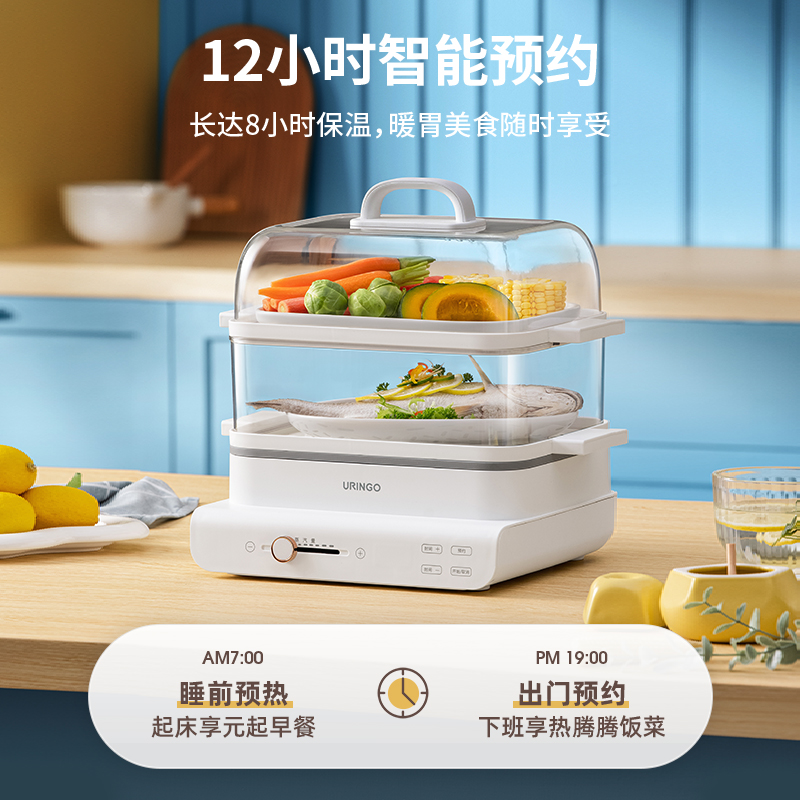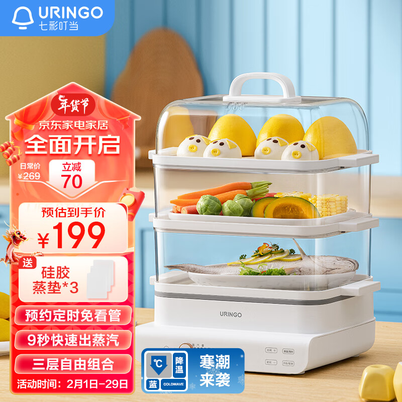 七彩叮当(URINGO)电蒸锅家用蒸包子蒸蛋器 电蒸笼 多功能可预约定时分体式三层18升大容量蒸汽锅 DZ01价格:199.00元!