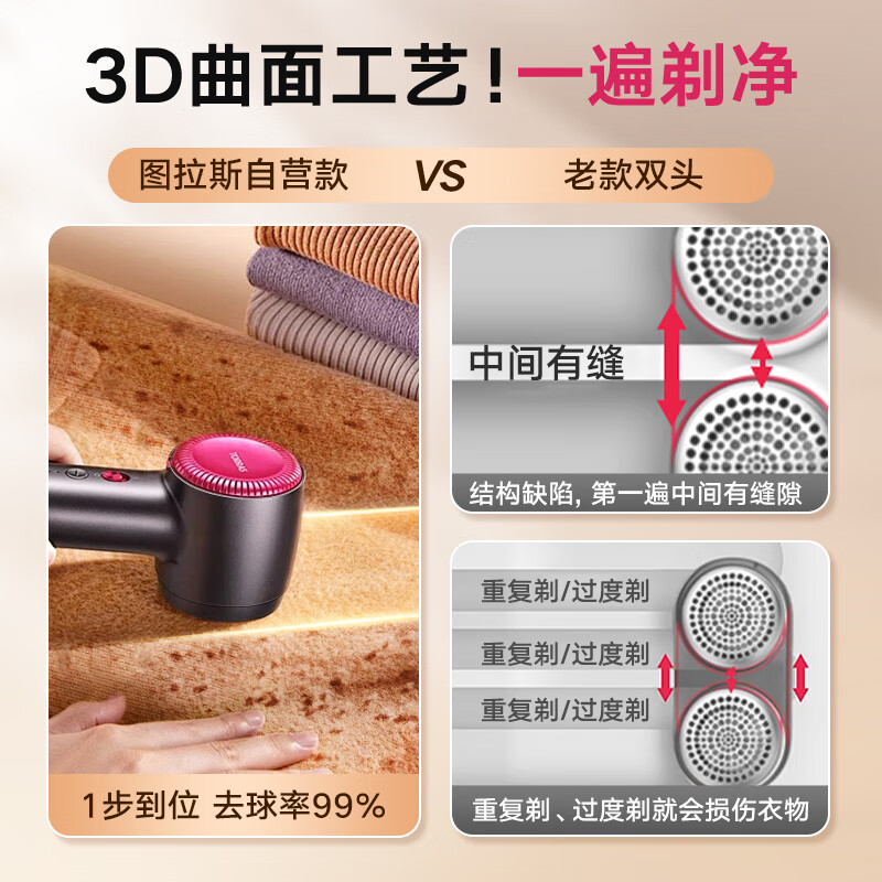 图拉斯(TORRAS)毛球修剪器【吸剃一体】剃毛器衣服去球器剃毛机家用充电式去毛球器电动打除吸刮剪剃毛球器价格:264.44元!