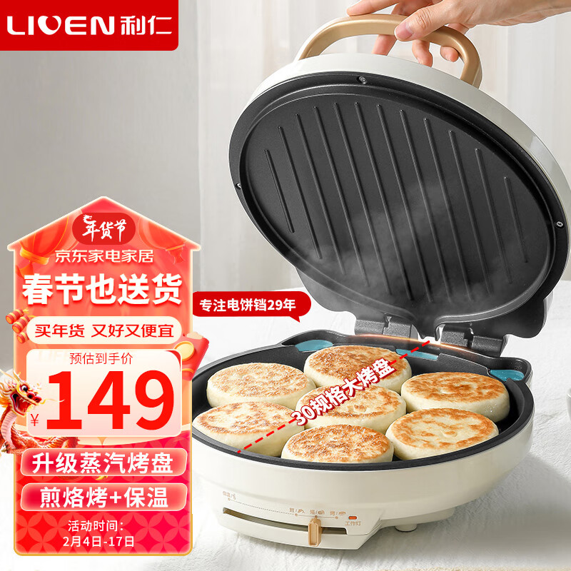 利仁(Liven)电饼铛家用加深烤盘双面加热电饼档电烙饼锅三明治早餐机电煎锅蒸汽煎烤 煎烙烤+保温 LR-J3077价格:149.00元!