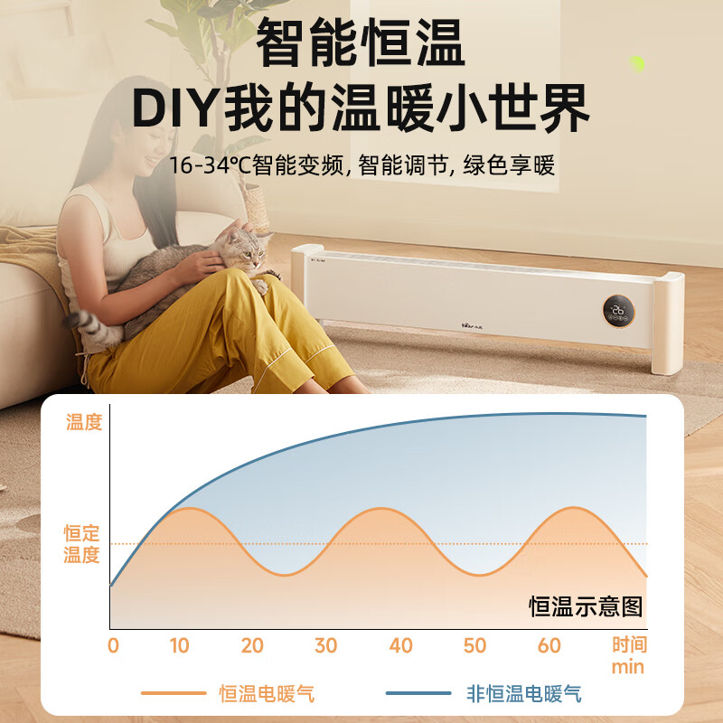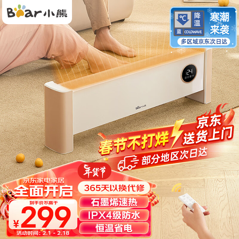 小熊(Bear)石墨烯踢脚线取暖器家用大面积电暖器电暖气片移动地暖防水浴室暖风机 智能恒温数显款DNQ-P20N6价格:332.00元!