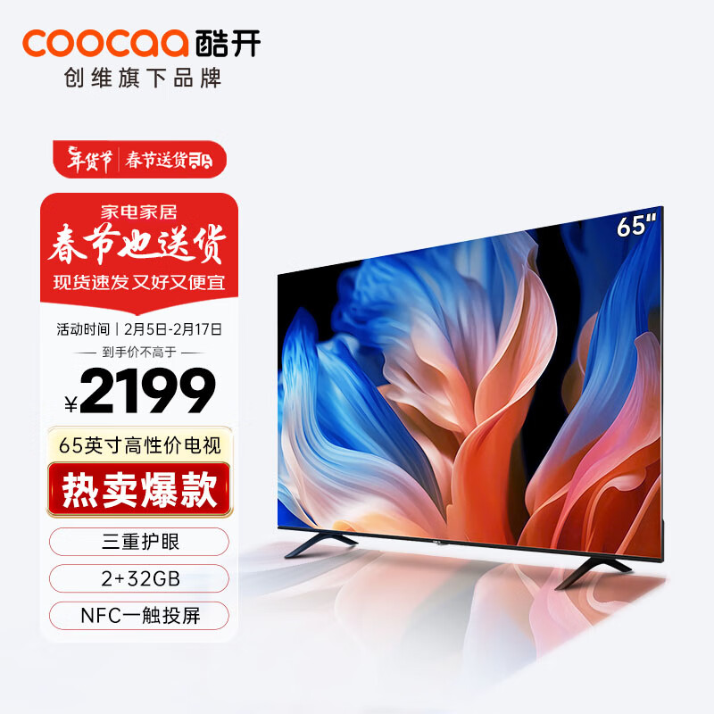 酷开创维K3 65英寸电视 2+32G内存 无边屏 智能语音 多功能投屏平板游戏液晶电视机以旧换新65P3D价格:2599.00元!