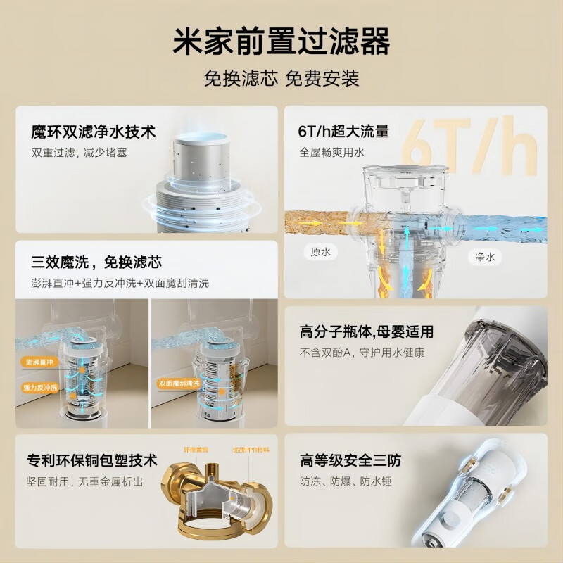 米家小米(MI) 前置过滤器反冲洗前置净水器全屋净水器家用过滤器前置净水器 MJQZGLQFYHDB价格:399.00元!