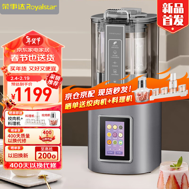 荣事达(Royalstar)蒸汽破壁机柔音家用豆浆机加热全自动榨汁机料理机早餐机1.2L大容量3-4人免手洗辅食机 RZ-1212A价格:1199.00元!
