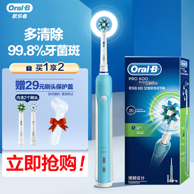 欧乐B电动牙刷成人 圆头牙刷情侣礼物3D声波旋转摆动充电式 D16蓝色 日常清洁 博朗精工价格:275.00元!