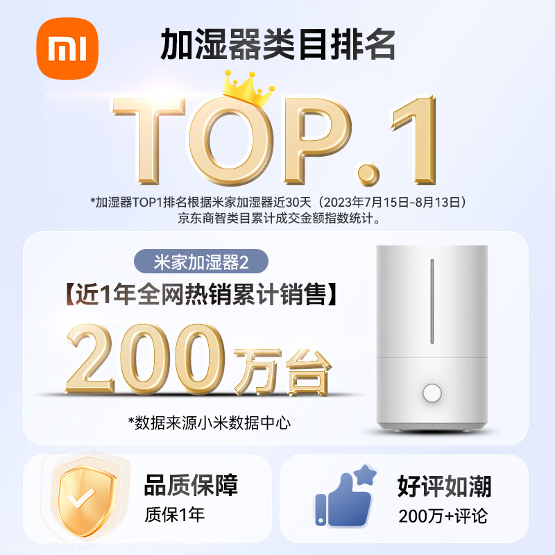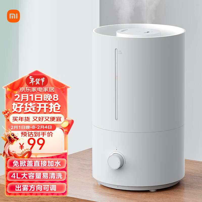 米家 小米加湿器2 卧室家用办公室桌面 迷你低噪空气加湿 银离子材料 上加水 4L大容量价格:99.00元!