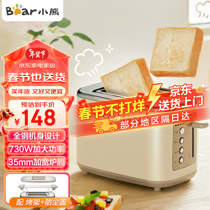 小熊(Bear)面包机 多士炉 烤面包机 早餐自动家用小型烤吐司机馒头不锈钢烤神器 DSL-C02M6丨不锈钢包边+6挡烘烤+配防尘盖价格:148.00元!