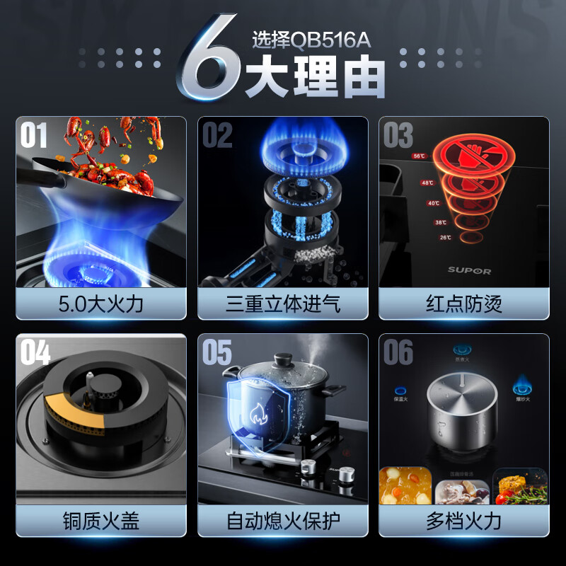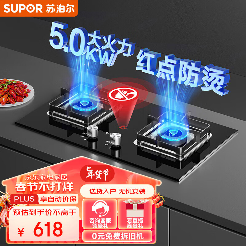 苏泊尔(SUPOR)燃气灶双灶家用 天然气双灶具5.0kW大火力 台式嵌入式两用灶台灶具 QB516A天然气价格:618.00元!