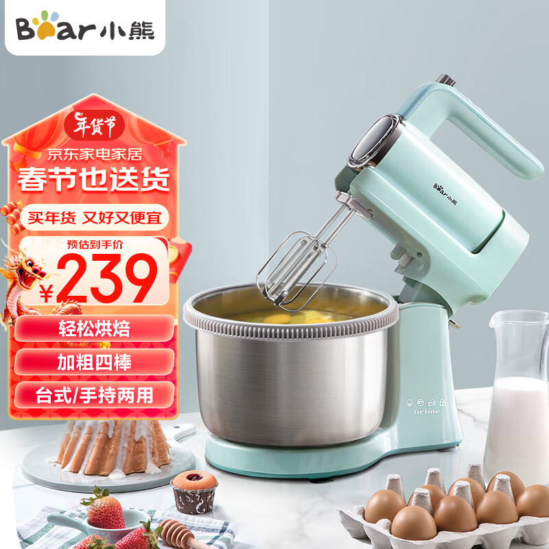 小熊(Bear)打蛋器 家用电动打蛋机 奶油奶盖打发器 烘焙手持自动搅蛋器 搅拌器DDQ-B03V1价格:239.00元!