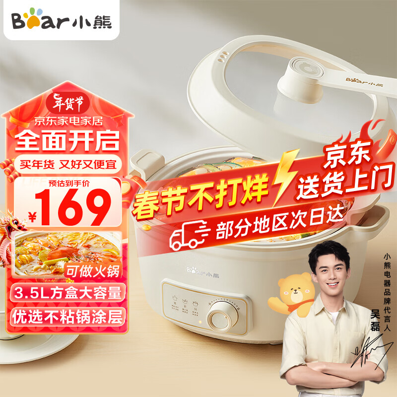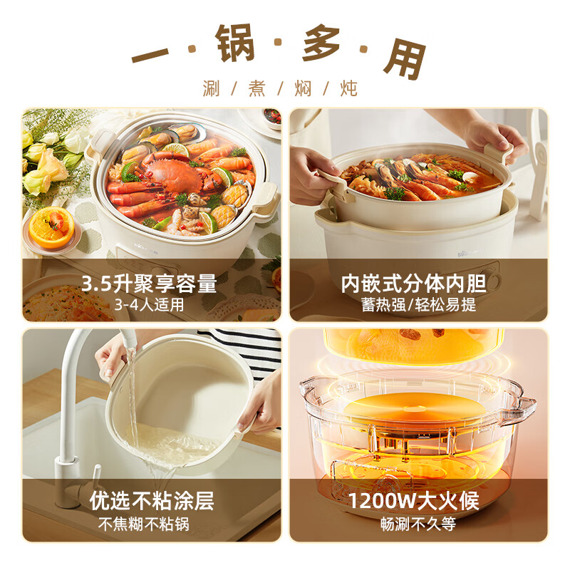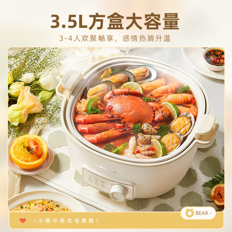 小熊(Bear)电火锅 电煮锅 火锅专用锅 家用多功能涮肉锅 不粘分体可拆洗3.5L电热锅 多用途锅 DRG-P30E5价格:168.00元!