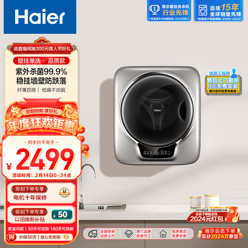 海尔(Haier)壁挂洗衣机 滚筒洗衣机全自动 迷你洗衣机婴儿洗衣机儿童洗衣机 3公斤 紫外线除菌 XQGM-BX798SU1价格:2499.00元!