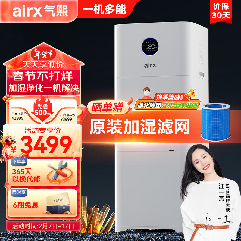 airx气熙 空气净化无雾加湿器大容量母婴级除甲醛净化加湿除菌一体机全屋净化一机多能四季可用A9h价格:3699.00元!