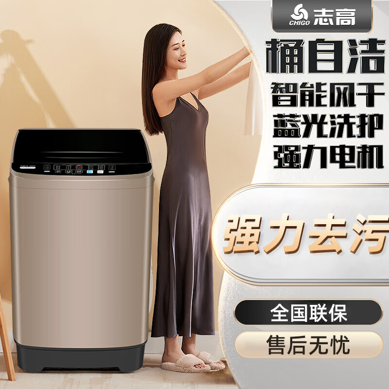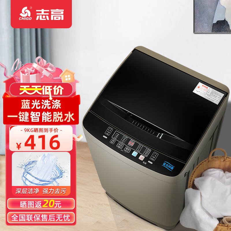 志高(CHIGO)9.0KG大容量全自动波轮洗衣机家用宿舍租房免清洗智能洗脱一体定制程序 XQB90-8189咖啡金价格:486.00元!