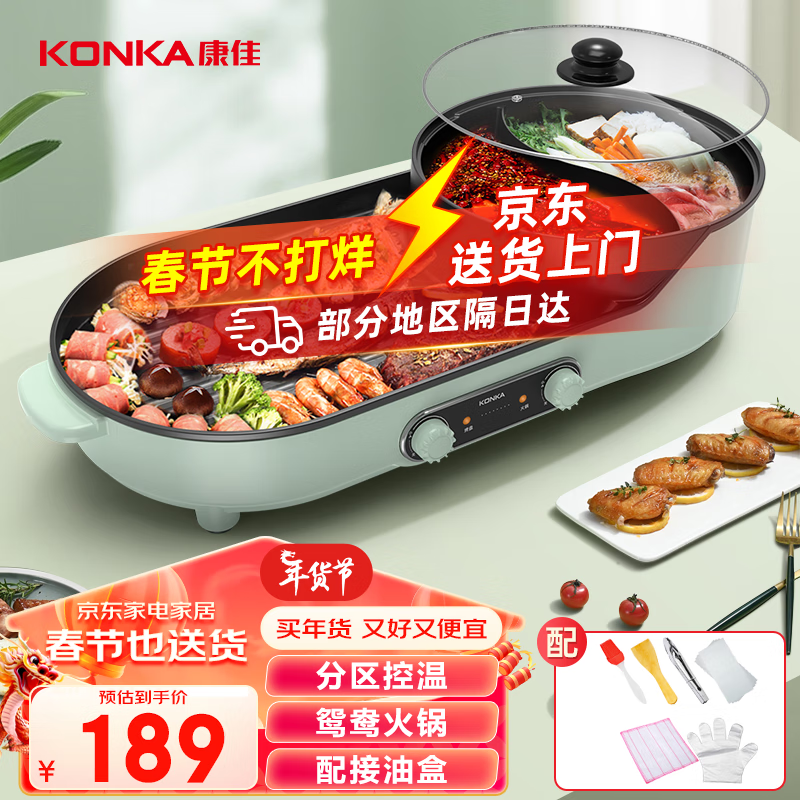 康佳(KONKA)电烧烤炉 家用无烟烧烤炉电烤盘 多功能火锅烤肉锅一体鸳鸯锅烤肉烤串烧烤机 KEG-W100F价格:189.00元!
