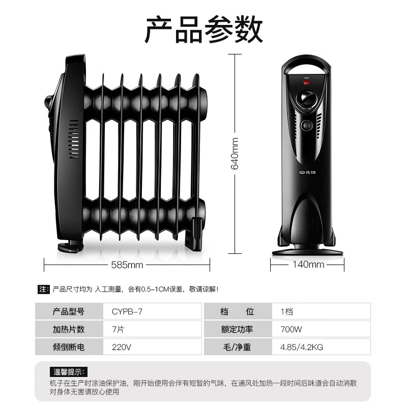 先锋(SINGFUN)取暖器/取暖气家用/7片电油汀/取暖电器/电暖器/暖气/电暖气片烤火炉油汀电暖炉移动地暖 CYPB-7价格:177.90元!