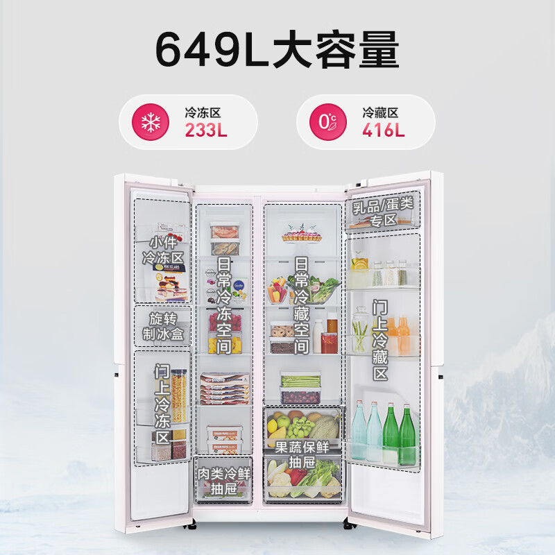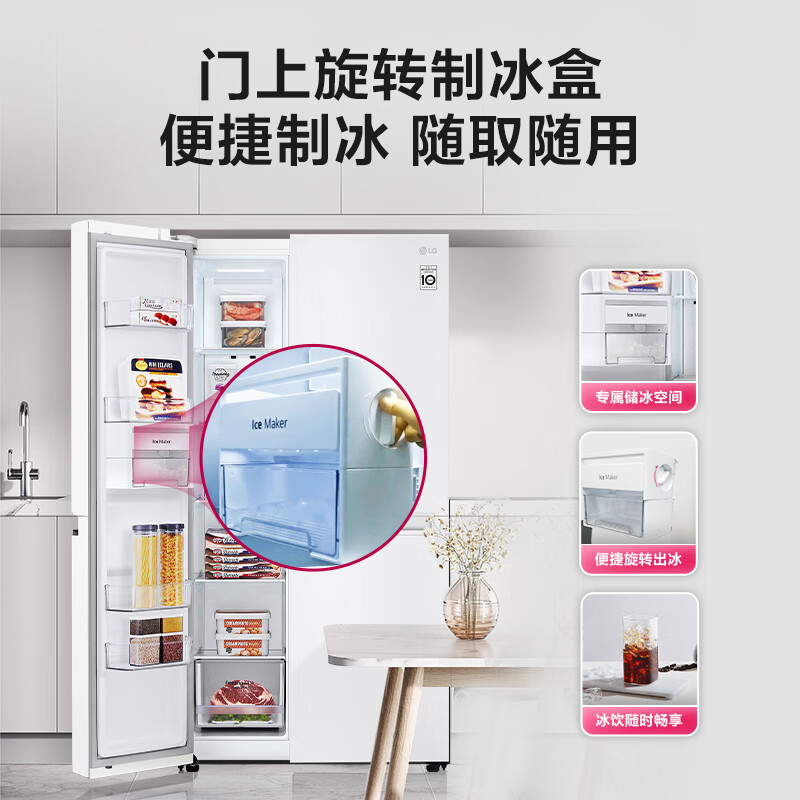 LG 御冰系列 649升超大容量对开门冰箱 双开门多重冷流 风冷无霜 保鲜冷冻分区 珠光白 S651SW12价格:5099.00元!
