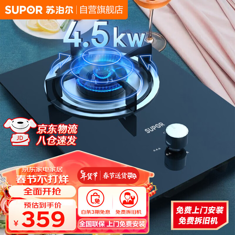 苏泊尔(SUPOR)燃气灶家用天然气灶4.5KW液化气灶单灶台式嵌入式两用灶具PB01A 【管道天然气】4.5KW熄火保护价格:359.00元!