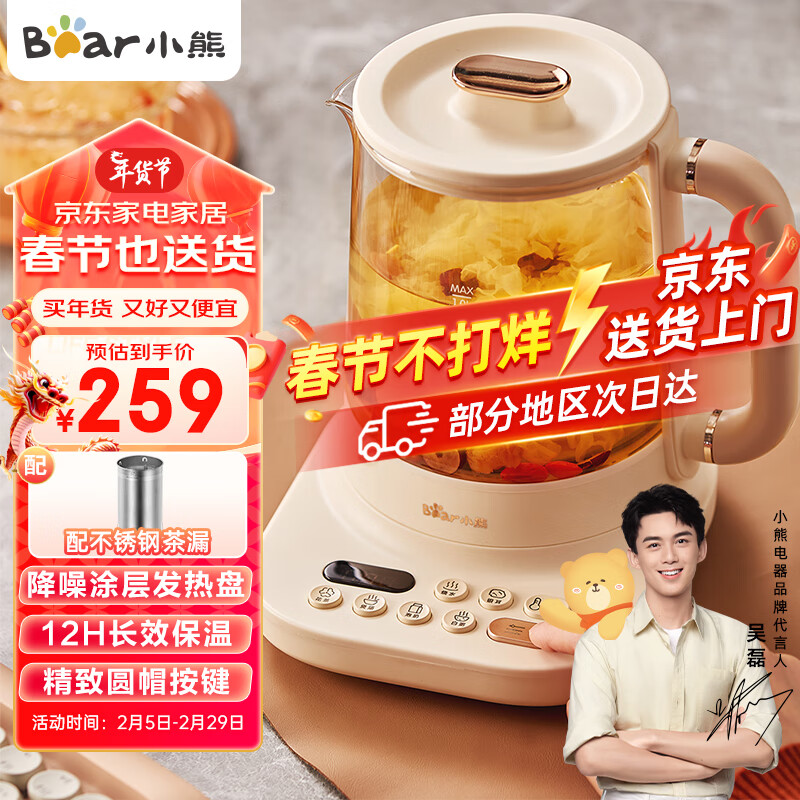 小熊(Bear)小气泡养生壶 办公室烧水壶 降噪涂层 1升迷你玻璃花茶壶 恒温水壶煮茶器煮茶壶 带滤网YSH-D10Y2价格:259.00元!