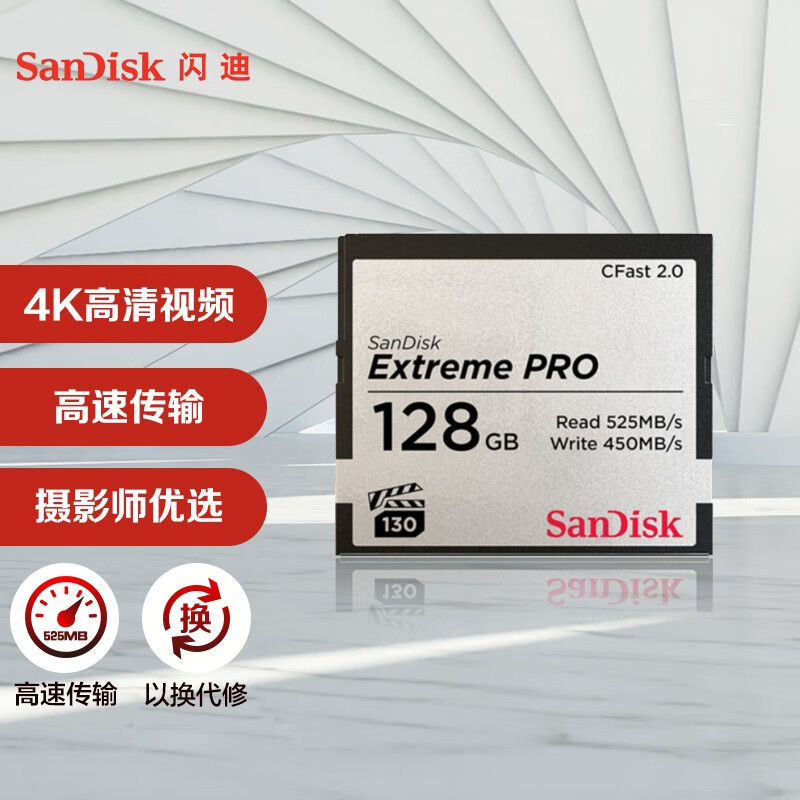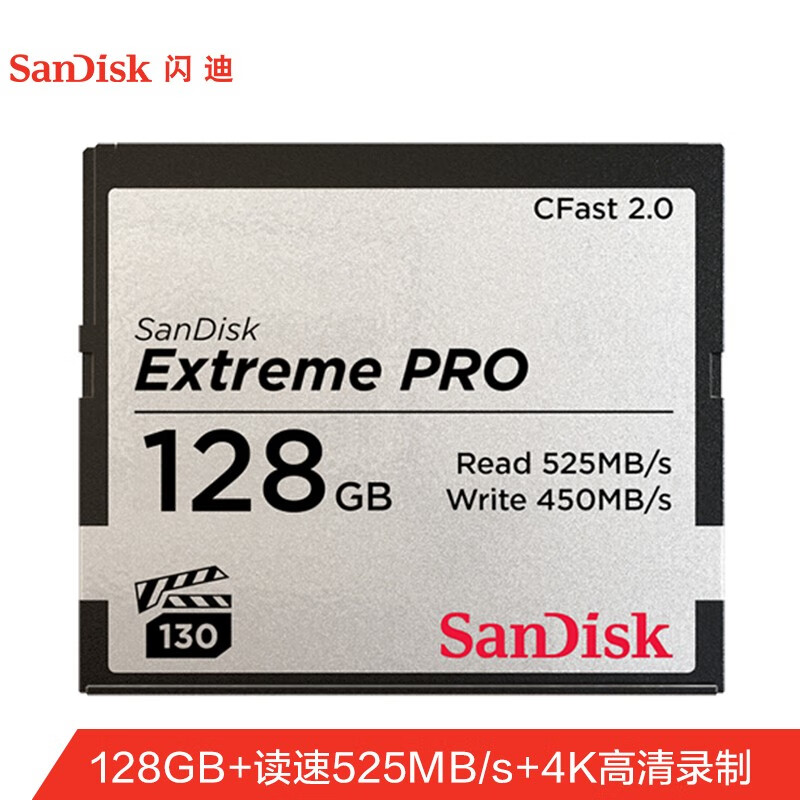 闪迪(SanDisk)128GB CFast 2.0存储卡 VPG-130 4K 超极速版单反相机内存卡 读速525MB/s价格:1499.00元!
