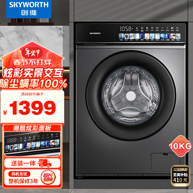 创维(SKYWORTH) 10公斤滚筒洗衣机全自动大容量 一级能效 变频 除螨 高温筒自洁家用 XQG100-B36RB价格:1399.00元!