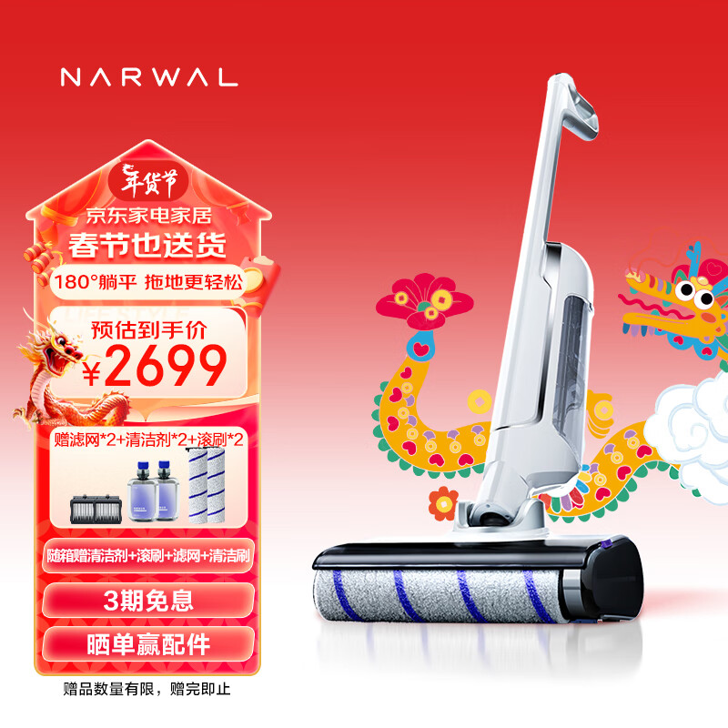 云鲸洗地机S1 吸拖一体180°躺平全自动家用扫地机拖地机吸尘器 无线智能手持拖把 电解水除菌热风烘干价格:2699.00元!