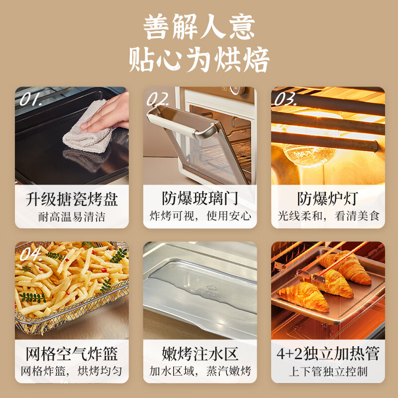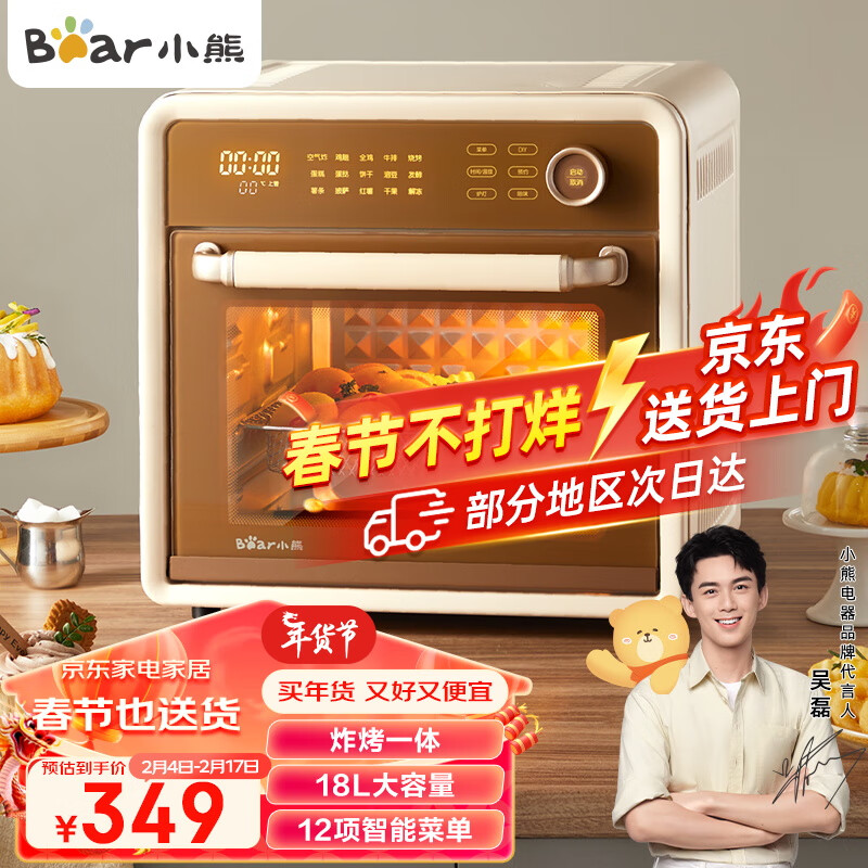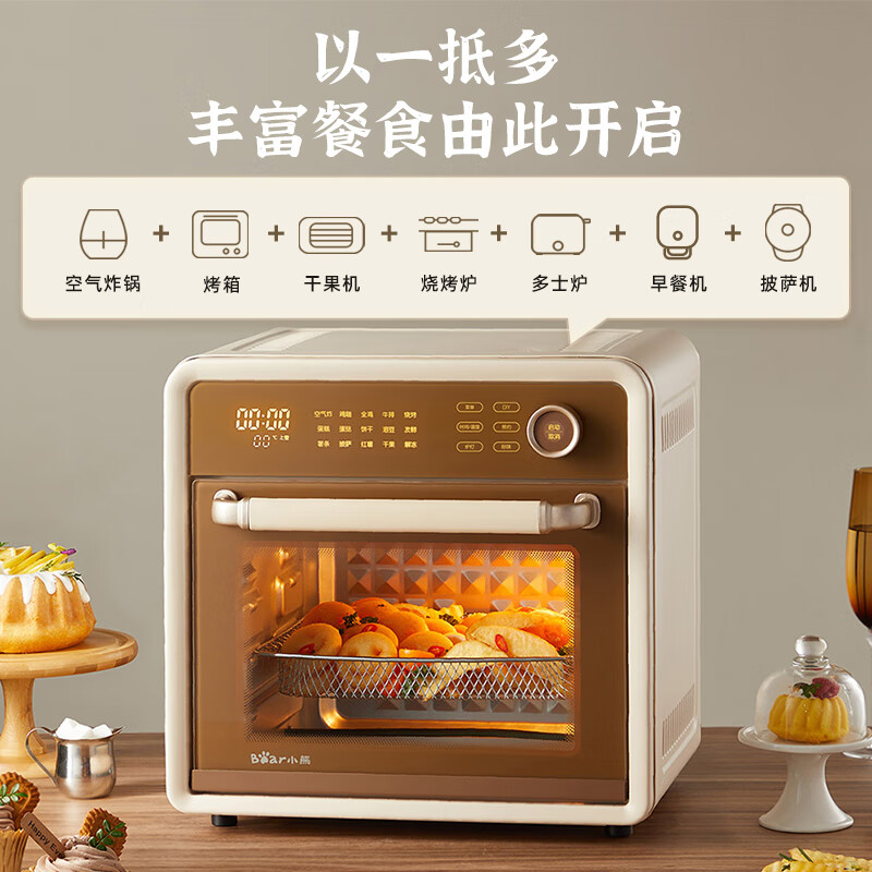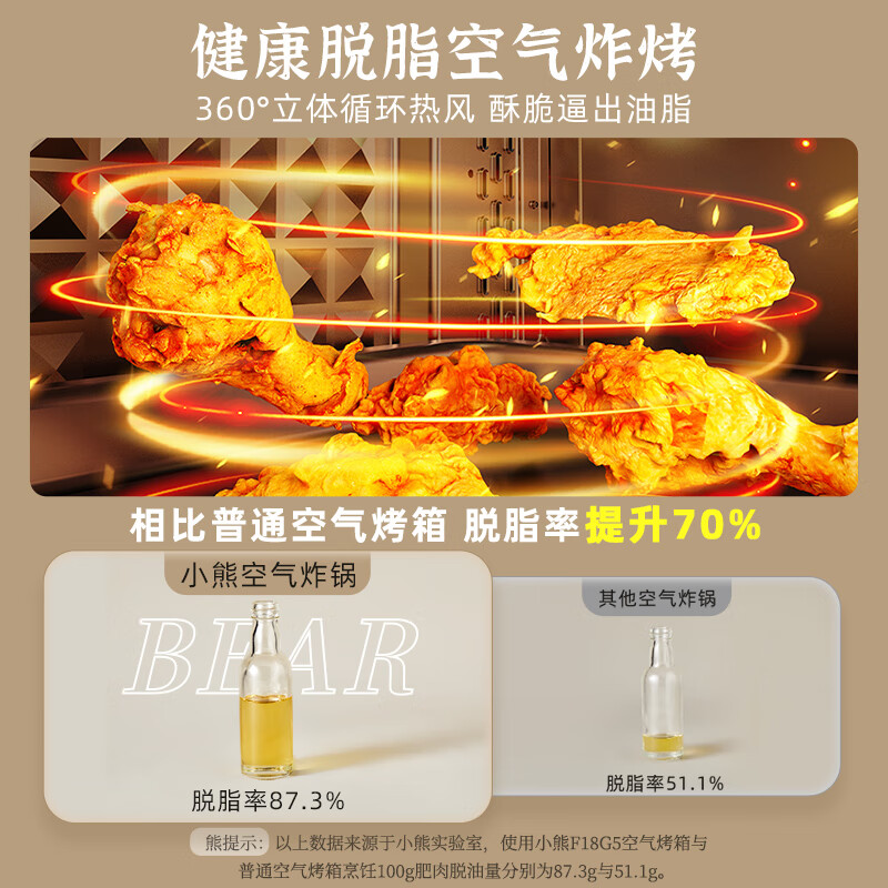 小熊(Bear)电烤箱家用空气炸烤箱空气炸锅烤箱一体机多功能蒸汽烤炸一体高效脱脂循环热风免翻面18L F18G5价格:379.00元!