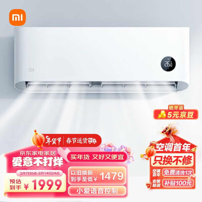 小米1.5匹 新能效 变频冷暖 智能自清洁 壁挂式卧室空调挂机 KFR-35GW/N1A3 以旧换新价格:1999.00元!