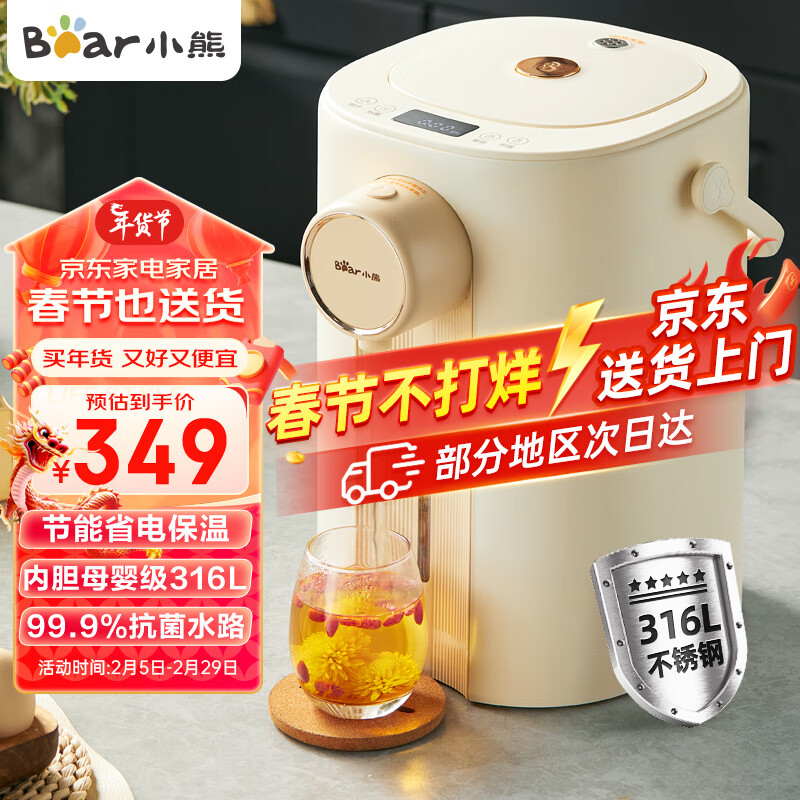 小熊(Bear)恒温水壶 电热水瓶5L防烫除氯电水瓶316L不锈钢电热水壶烧水壶 多段保温恒温电水壶 ZDH-H50R6价格:349.00元!