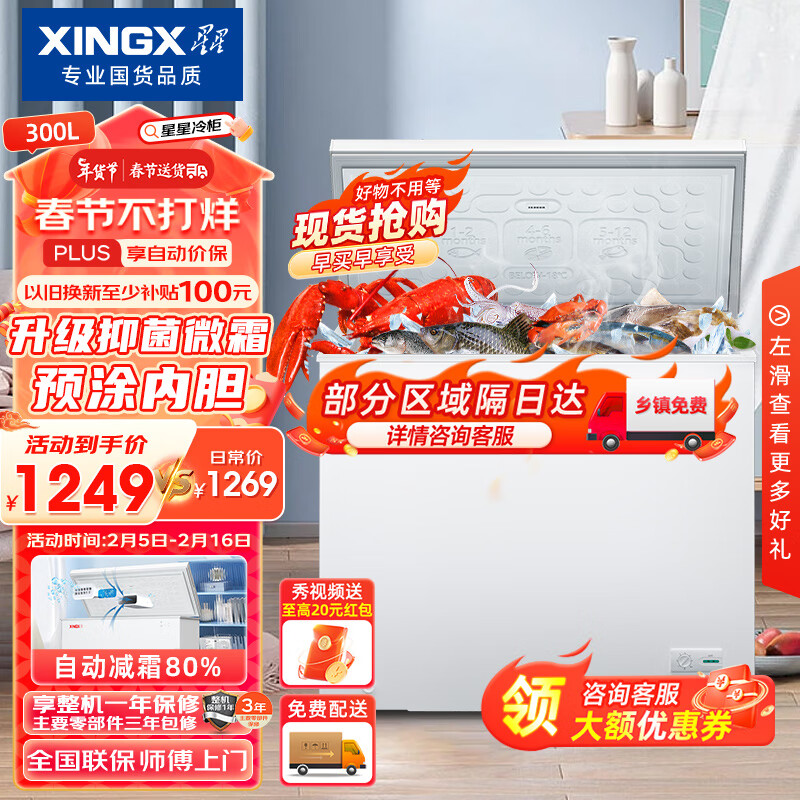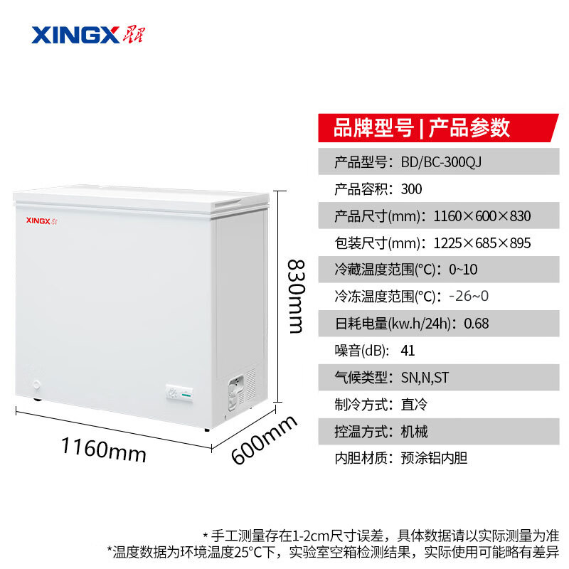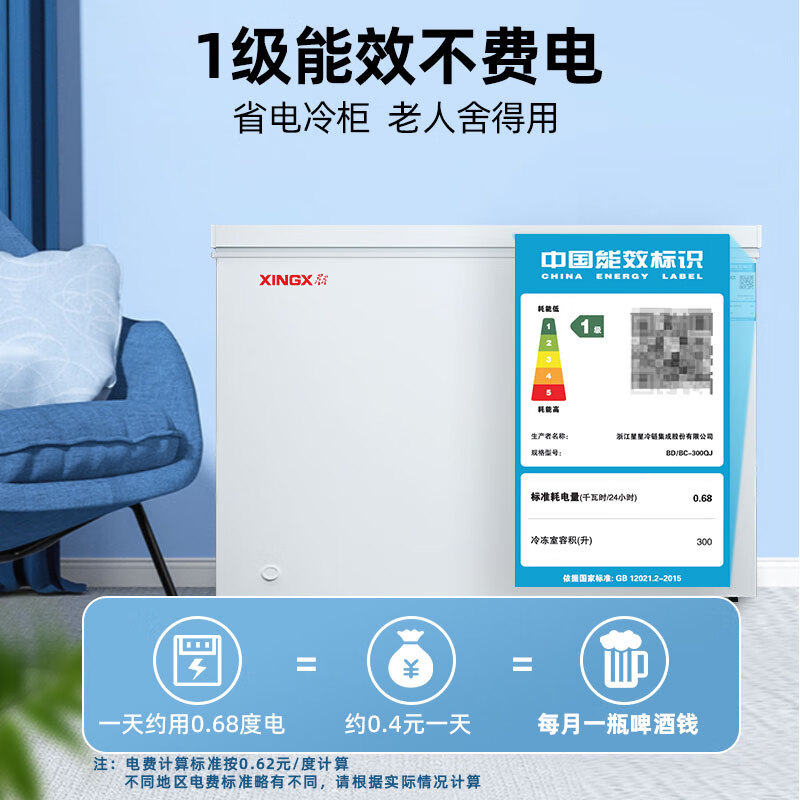 星星(XINGX)300升家用商用减霜净味冰柜 冷藏冷冻转换冷柜 节能顶开冰箱 BD/BC-300QJ价格:1249.00元!