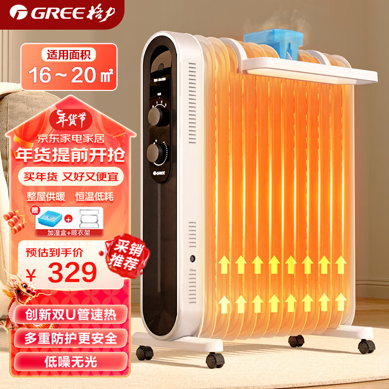 格力(GREE)【速热恒温】取暖器家用电暖器电暖气家用油汀取暖器13片低耗电油汀 NDY18-X6121价格:365.00元!