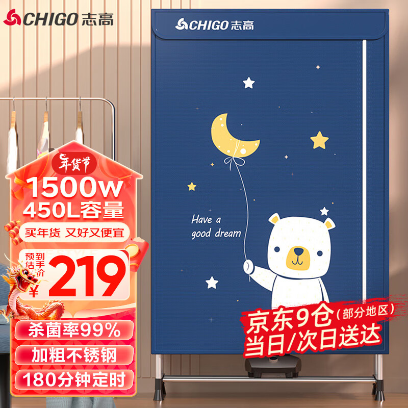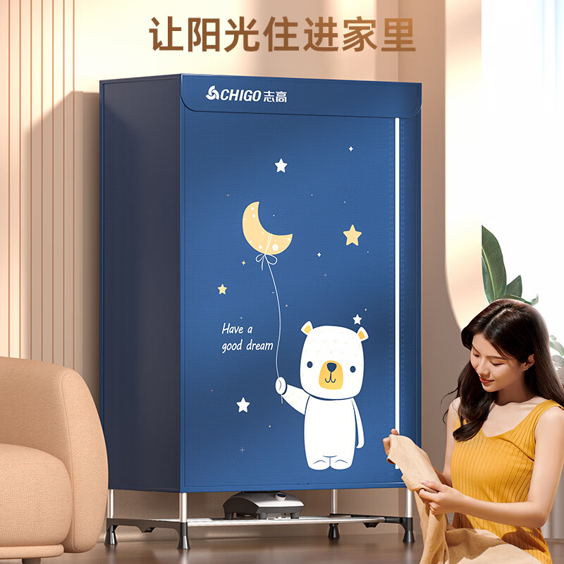 志高(CHIGO)干衣机烘干机家用烘衣机婴儿衣服烘干机衣柜式暖风干衣机大容量承重35斤可定时烘干衣服神器JLM03价格:219.00元!