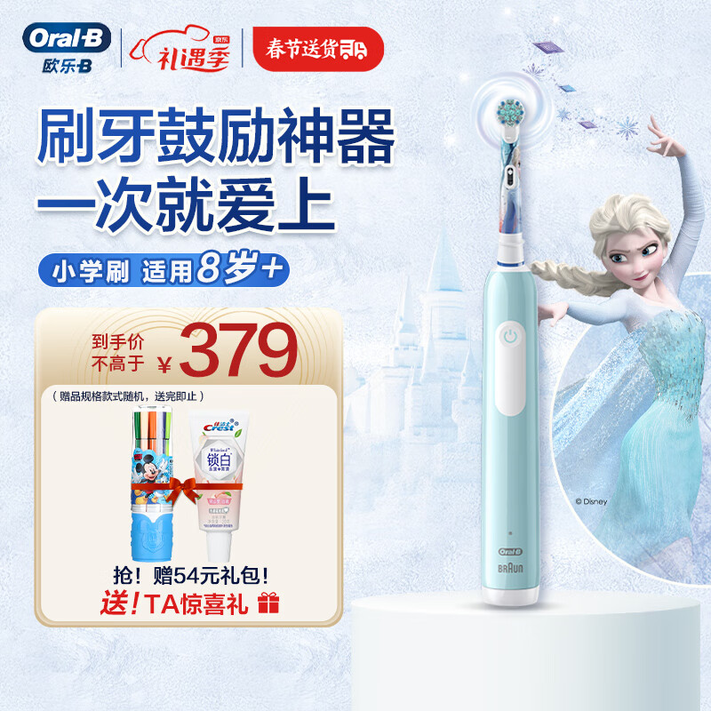 欧乐B儿童电动牙刷儿童8-12岁换牙期专用小学刷Pro 1 Kids冰雪奇缘款(刷头图案随机)日常清洁3D声波价格:439.00元!