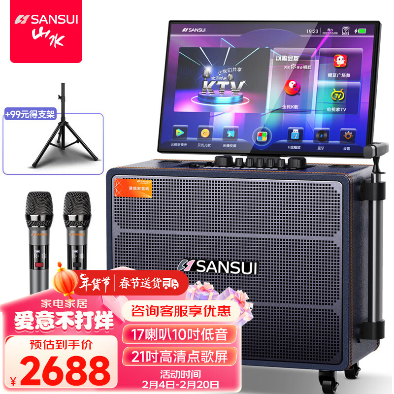 山水(SANSUI)Q109P广场舞音响带显示屏户外便携 家庭ktv音响套装 家用卡拉ok点歌机一体机视频机 电视k歌蓝牙价格:2688.00元!