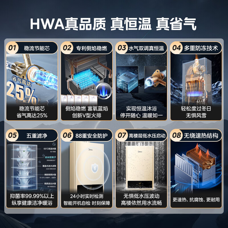 美的(Midea)13升燃气热水器 天然气 智能恒温 水气双调 低水压启动 多重安防 大屏显示 JSQ25-HWA价格:798.00元!