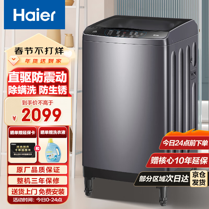 海尔(Haier)10KG波轮洗衣机全自动直驱变频一级能效家用大容量防生锈智能预约洗海立方内桶自洁XQB100-BZ5088F价格:2099.00元!